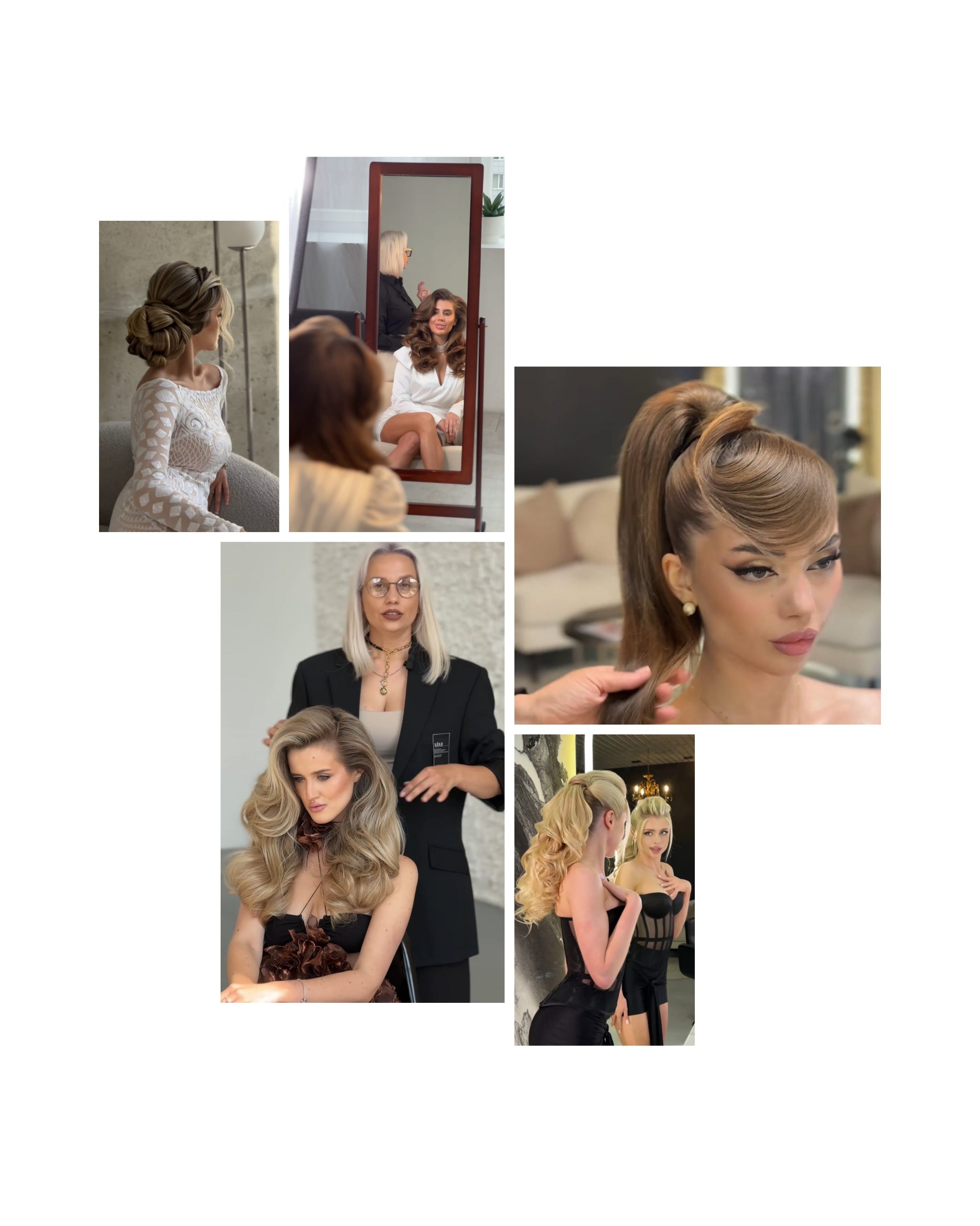 006. Сет із 5 зачісок (Весільна зачіска на основі елементу «буклі» в модному виконанні + Люксова укладка на натуральному густому волоссі + Роскішний високий глянцевий хвіст. Декілька варіацій оформлення біля обличчя (чілки) + Створення прикориневого стійкого об’єму феном та брашингом + Хвіст на основі об’ємних локонів)